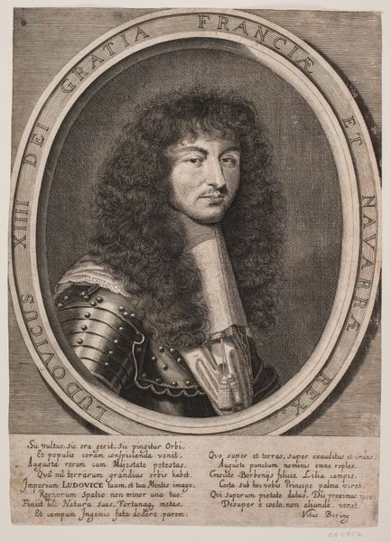 Editor: This is "Christopher Gabel," an engraving by Albert Haelwegh, created between 1664 and 1667. It’s a very formal portrait. What do you see in this piece? Curator: I see more than just a portrait; I see a statement about power and social structures during the Baroque era. Think about who Christopher Gabel was – a powerful figure in Danish and Norwegian governance. Haelwegh's engraving becomes a form of propaganda, reinforcing Gabel's authority and status through visual cues like the elaborate wig, the noble frame, and the inscription surrounding him. Do you think that helps or hinders the viewing? Editor: I see what you mean. I initially just saw a portrait but thinking about the political power structures, I can also understand why it was displayed, or for whom. But isn’t it simply meant to represent the person? Curator: Representation is never neutral. Even seemingly straightforward portraiture is imbued with ideology. Consider the implications of who gets portrayed and how. In the 17th century, the act of creating and disseminating a portrait like this reinforced the existing social hierarchy. Gabel's portrait not only celebrates him but also implicitly justifies his position. Editor: That's a really interesting point. So, we have to also think about what’s left out? The stories not being told? Curator: Precisely. It urges us to question whose stories dominate and to actively seek out the perspectives that have been historically marginalized. This artwork, then, isn't just a historical relic; it's a point of entry for understanding the ongoing dynamics of power and representation. Editor: Wow, I will never see portraits in the same light! It's definitely much more layered and complicated than I originally thought. Curator: Art always speaks more clearly and more loudly when put into historical, sociopolitical contexts. Thanks for the refreshing perspective!