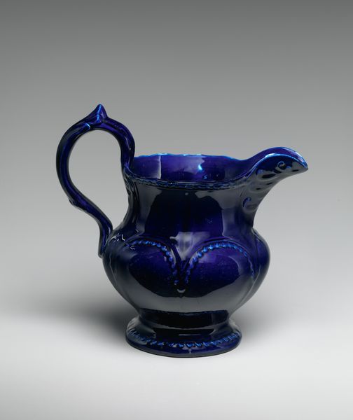 Curator: Here we have a pitcher, crafted by Norton and Fenton between 1845 and 1847. It's currently part of the collection at the Metropolitan Museum of Art. Editor: My initial impression is quite somber, despite the floral decoration. The brown glaze lends it a rather earthy and weighty feel, almost like a stoneware sculpture rather than a functional object. Curator: Exactly. The use of ceramic is central here; understanding the processes involved in its production offers insight into the artisans’ skill and the prevalent technologies of the mid-19th century. It speaks to industrial advances but also traditional craft. Editor: Agreed. We also have to remember the socio-economic contexts in which it was produced and consumed. Consider, who owned these pitchers? What did their presence signify about social class, gender roles within the domestic sphere, or access to material goods? Curator: Absolutely. The piece reflects a period where design intersected with manufacturing, aimed toward an emerging middle class who aspired for both functionality and aesthetic refinement. Notice the moulded floral details—a subtle nod to luxury achieved through mass production. Editor: It makes me think about Victorian ideals and the ‘language of flowers.’ What stories were these flowers meant to convey about the users' values or aspirations, given that objects played a central role in social signalling during that era? The dark glaze may point towards ideas around mourning, or, perhaps, an acquired taste of elegance? Curator: Or possibly influenced by the aesthetic movements which found beauty and value in dark earthy tones—materials valued less for inherent worth than for the labor necessary for its transformation? It really is at a cross-section of taste, production capability and also utility, if you consider that these objects became crucial as tea-drinking became increasingly popular. Editor: And thinking through our current historical lens, we can consider it as part of a narrative surrounding design history. Considering who had access to labor, resources and also knowledge production, there is quite a complicated legacy woven into objects that seem superficially pretty. Curator: Very well put. Examining utilitarian wares provides a concrete reminder that there's significant narrative beyond the traditional lens that focuses on painting and sculpture. Editor: Indeed; these functional objects are loaded cultural artefacts. Food and drink consumption and domestic life always reveal larger trends of the human condition. Curator: Precisely. Thank you for shedding such thoughtful perspectives on what initially appears to be merely a modest, utilitarian object. Editor: It has been my pleasure; I hope our analysis provided a deeper appreciation into objects so familiar they become imperceptible to scrutiny.