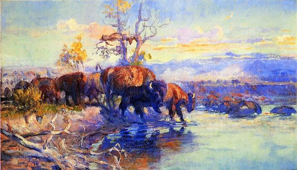 Wilhelm Kuhnert painted these elephants at a waterhole, capturing a scene of raw vitality. The upraised trunk is a powerful visual motif, resonating with ancient symbols of strength and good fortune. Its roots can be traced back to Indian iconography, where the elephant-headed god Ganesha represents wisdom and the removal of obstacles. Observe how the raised trunk embodies the life force, what the Greeks called 'élan vital'. It is a gesture of command, a declaration of existence. Yet, it also suggests a vulnerability, an openness to the world. In the subconscious, such gestures evoke deep emotional responses. Consider how this single trunk mirrors the human capacity for joy, grief, and everything in between. The echoes of such ancient symbols reverberate through time, transformed and reborn in new forms. The elephant, revered and feared, remains a potent symbol, reminding us of the complex dance between nature, culture, and the enduring human spirit.