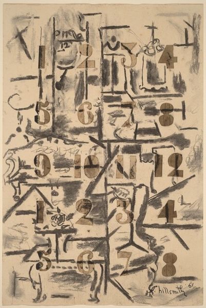 Editor: So, this is Reginald Case's "House and Forms," its date is unknown, at the Harvard Art Museums, it is somber, almost like a faded memory. What narratives do you see emerging from these combined shapes? Curator: The house, juxtaposed with these abstract forms, speaks volumes about shelter and societal structures, doesn't it? Consider the pyramid, a symbol of power, next to the domestic space. Is Case commenting on the pressures and expectations placed upon the home? Editor: That’s a fascinating point. The pyramid does seem to loom over the house. What do you think this says about gender and power dynamics? Curator: Precisely. How might traditional gender roles within the home be subtly critiqued by the presence of these imposing, traditionally masculine forms? Editor: I hadn’t considered that! It really shifts my understanding of the piece. Curator: It’s a quiet rebellion, perhaps. The beauty is in unpacking these layers.