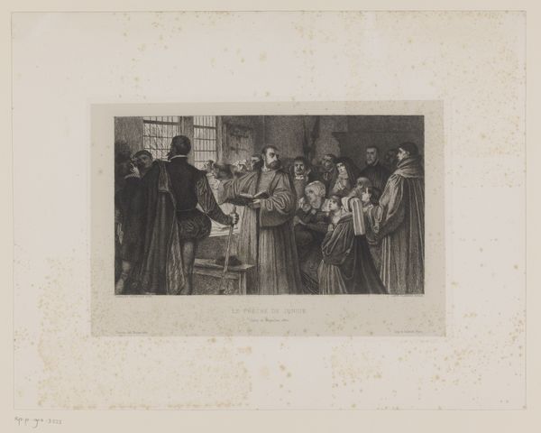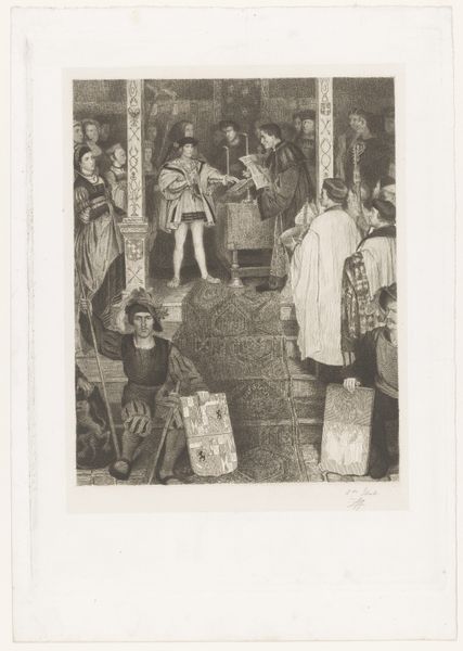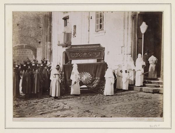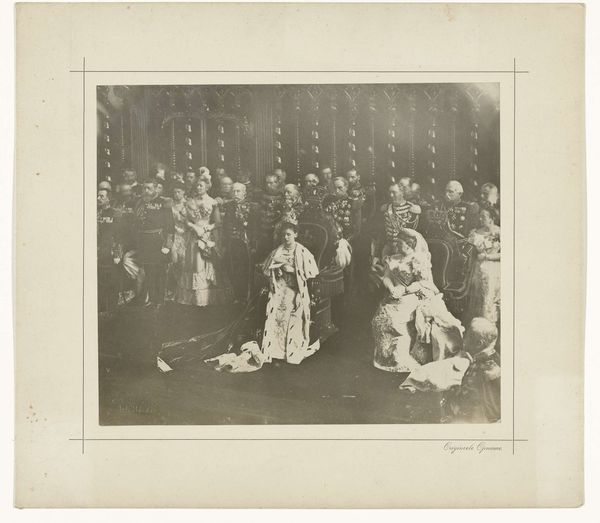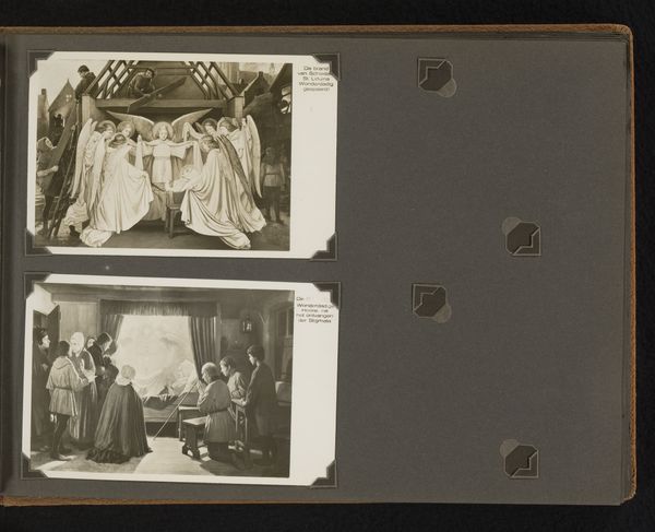 Editor: Here we have a gelatin-silver print from around 1929, titled "Leerlingen van Schule Schloss Salem tijdens een dramatische uitvoering," which translates to "Students of Schule Schloss Salem during a dramatic performance". The photographic texture is interesting – what strikes you about the material aspect and context of its creation? Curator: Given its nature as a photograph of a student performance at a school rooted in progressive education, I’m drawn to the means of production here. The choice of gelatin-silver, a process that was relatively accessible at the time, implies an intent to document but also possibly disseminate, creating a visual record of the school’s pedagogy. What was the social function of the work intended to be? Editor: So, it's not just about the final image, but the material reality of how it was produced and its potential use for propaganda for this educational institution? The figures arranged are definitely performing, but how does the materiality of photography influence the performative aspect of this scene? Curator: Precisely. Think about the labor involved – from the photographer to the students acting as performers and set designers – each role contributing to the final representation. Photography democratized art production, making images available to a broader public, moving beyond elitist confines of what ‘art’ should be. Was this gelatin print, with all its social meanings embedded, created and consumed differently to oil on canvas for example? Editor: It does sound like the intention and production are perhaps as, or maybe even more important, than the subject matter, the captured image, and the photo, through its materiality, becomes a powerful message. It helps to see art history through this lens! Curator: Indeed! By understanding the material and social conditions, we gain deeper insights into the motivations and messages encoded within the work, breaking down those boundaries between what constitutes 'art' versus mere 'craft' or 'document'. It is about the means of representation and also how things were produced and used.