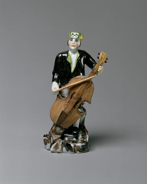 This is a porcelain sculpture of a monkey guitarist, produced by the Meissen Porcelain Manufactory. It reflects a popular 18th-century European trend known as "singeries," where monkeys were depicted in human attire and activities, often humorously mimicking social elites. These monkey figures weren’t simply whimsical decorations. They were produced in Germany, where porcelain manufactories were often patronized by royalty and aristocracy. Figures like this one served as a satirical mirror, reflecting and gently mocking the behaviors and pretensions of the upper classes, from fashion and musical tastes to social gatherings. They provided a safe outlet for social commentary, using humor to critique the establishment. To fully appreciate this sculpture, one might look into the history of European porcelain production, the social customs of the 18th century, and the ways in which satire was used as a tool for social critique. Understanding the historical context allows us to see how art can reflect and comment on the society that creates it.