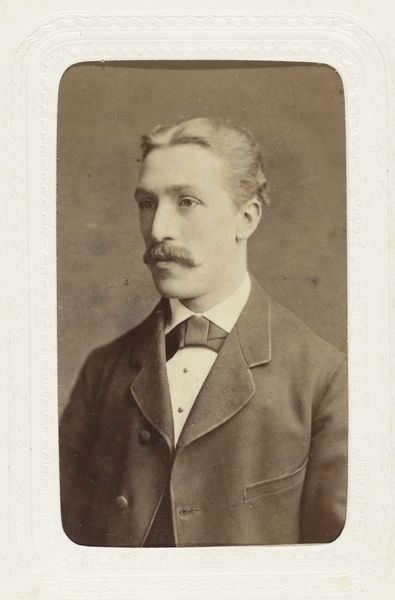 This is George Lodewijk Mulder’s portrait of a man, a photograph created at a time when photography was rapidly evolving. Mulder, born in the 1840s, operated in a society deeply structured by class and emerging ideas of modernity. The man in the portrait, with his neatly styled hair and formal attire, presents a composed image that speaks to the era’s emphasis on respectability and social standing. The ambrotype, a photographic process that renders a positive image on glass, was popular for its relatively quick and inexpensive portraiture, making images like these accessible to a broader segment of the middle class. The photograph presents a study in contrasts: while offering a glimpse into the sitter’s identity, it also reflects the limitations and conventions of photographic representation during the late 19th century. The man’s reserved posture and expression speak to societal expectations. Yet, within these constraints, there is a quiet assertion of self. It is a delicate interplay between visibility and concealment.