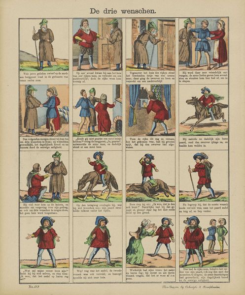 Oehmigke & Riemschnieder created "Dolle streken van Tyl Uilenspiegel," capturing the legendary pranks of Tyl Uilenspiegel in a series of illustrations. In the context of the 19th-century, Tyl became a symbol of regional identity and resistance, particularly in areas seeking to assert their cultural distinctiveness against larger political entities. This piece taps into that tradition, with a winking, knowing nod. Note the mischievous glint in Tyl's eye in the first frame. The comic strip format makes the stories accessible to a broad audience, reinforcing Uilenspiegel's status as a folk hero. The humor in the strip, often at the expense of authority figures or the bourgeoisie, suggests a subtle critique of social hierarchies. Tyl's pranks are a form of subversive commentary. This work reflects the emotional resonance of folk tales in shaping cultural identity, inviting viewers to reflect on the role of humor and resistance in navigating social structures.