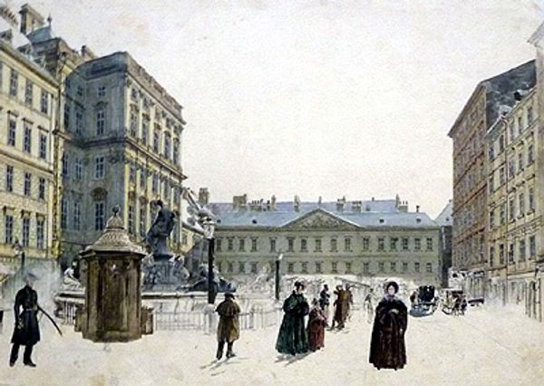 Achille Pinelli painted this watercolor, featuring a church and commoners, with no determined date. The prominent presence of the church signifies not just a place of worship, but a nexus of community, its architecture a solid testament to faith and order. Look at the gathering of people outside; they remind me of similar scenes found throughout history, where sacred places act as social epicenters. Take note of the act of charity depicted—a motif recurring across centuries. It echoes ancient Roman depictions of "alimenta," public assistance for children, reflecting a timeless concern for welfare. The psychological weight here is palpable. The church offers solace. The act of charity is a powerful, universally understood symbol of empathy. The church facade, with its classical columns, connects to a historical past. Through these symbols, Pinelli taps into deeply rooted emotions and memories. Consider how the imagery of communal support and spiritual refuge evolves, appearing and reappearing through history. This cyclical recurrence highlights the enduring human quest for meaning.