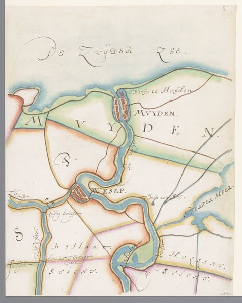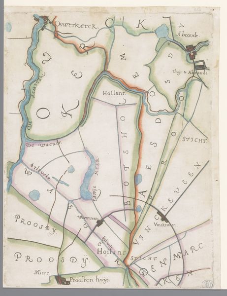 This is a section of a map of the Hoogheemraadschap of Rijnland, with Amstelveen and Schiphol, created by Floris Balthasarsz van Berckenrode. The use of line and color to delineate space and waterways commands our attention. The map's structure presents a fascinating interplay of representation and abstraction. Linear forms meticulously chart the waterways, while patches of color denote landmasses, creating a semiotic code that invites interpretation. The map presents not just a geographical rendering, but a constructed view of space. The careful arrangement of elements challenges our conventional understanding of perspective and scale. Through this flattening of space, the map destabilizes fixed meanings, inviting us to question our relationship with the environment. The map becomes a site of ongoing interpretation.