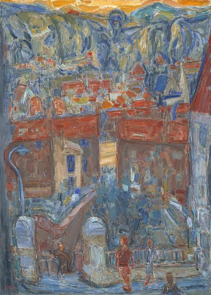 Sasza Blonder, created this oil on an unknown support with vertical emphasis, probably in the 1940s. Our eyes are led through the painted pillars and archway. The composition uses bold, directional brushstrokes and warm tones, which create a sense of depth and movement. Blonder's loose application of paint emphasizes the materiality of the medium, moving away from photorealism. The pillars create a visual rhythm, guiding us toward the suggestion of a garden space beyond. The painting’s strength lies in its ability to evoke a mood through color and form. The figure in the foreground, though small, invites us into the implied narrative. This dynamic play of color and form reflects a broader shift in early 20th-century art, where personal expression and the exploration of perception took precedence. The garden entrance, with its hints of vibrant life, becomes a symbol of potential. The formal elements of the painting invite us to engage with its open-ended narrative.