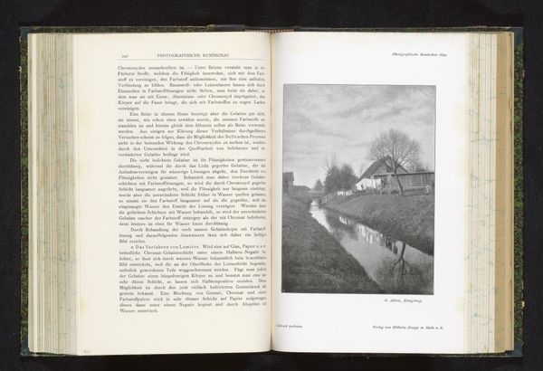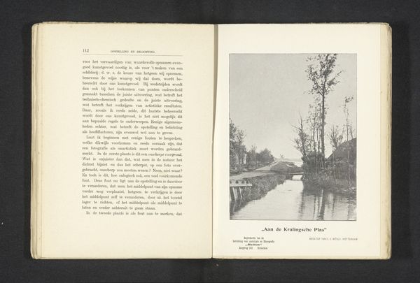 This black-and-white photograph, “Gezicht op een winterlandschap”, was made by H. Winckelmann. It’s an image reproduced in a book, and the printmaking process used here is photogravure. Photogravure is a labor-intensive technique, involving the transfer of a photographic image onto a metal plate, which is then etched and printed. Unlike a standard photograph printed on paper, this process gives the image a subtle, almost painterly quality. Consider the amount of work involved: from capturing the initial image with a camera, to preparing the plate, inking it, and finally, pressing the print. Each stage requires expertise, time, and care. Photogravure was favored by artists and publishers seeking high-quality reproductions. The finished product is a testament to the skill and dedication of the individuals involved in its making. It is important to recognize the value of the craft that goes into the making of even seemingly ‘mass produced’ images. It challenges the traditional hierarchy between art and craft, reminding us to consider the human labor involved in the creation of every object.