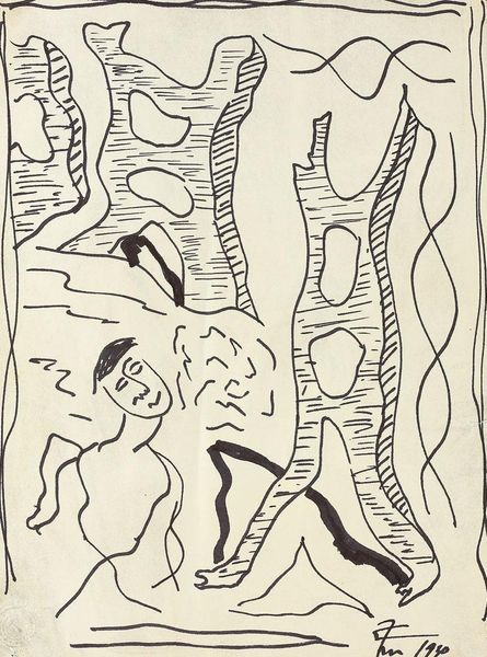 Editor: This intriguing drawing, titled "Untitled" and created by Pablo Picasso in 1971, employs ink on paper. The composition, with its densely packed figures, feels both chaotic and intimate. How would you interpret the visual organization of this work? Curator: Focusing purely on the formal qualities, the drawing presents a fascinating interplay between line and form. Observe how Picasso uses varied line weights—thin, almost hesitant strokes against bold, assertive ones—to delineate figures and create a sense of spatial ambiguity. Do you notice how the absence of color forces us to concentrate on the pure structure of the composition? Editor: Yes, definitely. The contrast in line weight really does guide my eye. The lack of color is stark, but I think it helps focus on the figures. What do you make of the densely packed composition? Is there a reason the elements of the work overlap as they do? Curator: Precisely. The overlapping and intertwining figures disrupt a clear sense of depth, creating a flattened picture plane, echoing certain Cubist principles he helped pioneer. Each form challenges the autonomy of the next, inviting us to see them in dynamic interrelation rather than as isolated elements. Consider the bull’s body merging into the figures: does that visually disrupt traditional compositional structure? Editor: It definitely challenges it, the way the bull becomes intertwined into the bodies makes me unsure of how to properly parse the space. It definitely gives off that feeling you were talking about before about dynamic interrelation. Is it possible to talk of semiotic theory here, regarding the disruption of spatial organization within the traditional structure? Curator: Absolutely! By deconstructing the classical compositional architecture, it can be seen to subvert any fixed or singular "reading" of the artwork. Do you notice any traditional interpretations for a space as intimate, yet crowded? Editor: It definitely speaks to a type of distortion I feel unaccustomed to! It does add new meaning to Picasso’s vision. I can see a completely new perspective about Picasso's vision thanks to formal qualities. Curator: Agreed, examining intrinsic structure offers insight!