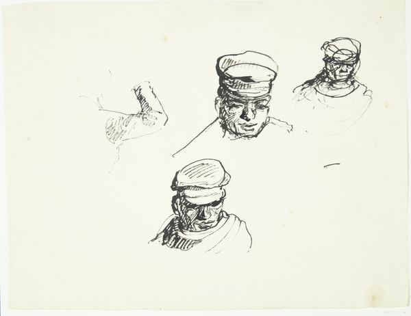 Curator: Allow me to introduce "Tahitian Heads", a pencil drawing by Paul Gauguin, dating approximately from 1891 to 1893. Editor: There's something unfinished and incredibly intimate about it. The starkness, the unadorned pencil strokes, the sense of capturing something fleeting. It feels less like observation and more like remembering. Curator: Gauguin’s choice of medium here, a simple pencil, really collapses any distinction between high art and the raw materials he was consuming and reproducing images with during this time. Think about the labor involved not just in the act of drawing, but in sourcing the graphite itself. Editor: That's fascinating! For me, it almost feels as if he is gently coaxing these faces onto the page rather than actively imposing his will on them. Like he's listening for their story rather than trying to tell it himself. Curator: Exactly! The paper itself bears witness, doesn't it? The very texture informs how the graphite is laid down, and how that relates to the legacy of French colonialism. Editor: It's so easy to lose sight of that history, focusing on the aesthetics alone. And, wow, the differing perspectives captured in such a small space is just beautiful. Each angle hints at a unique personality, a quiet dignity amidst the sketches' simplicity. Curator: Absolutely. The scale, the directness of the medium, it all compels us to reconsider what constitutes value and whose labor goes unacknowledged when we discuss "art." What are the social implications when such simple materials render people worthy of attention in a space such as this museum? Editor: Food for thought, truly. Thank you for guiding us today through a piece so apparently simple, yet layered with unseen histories and hidden echoes.