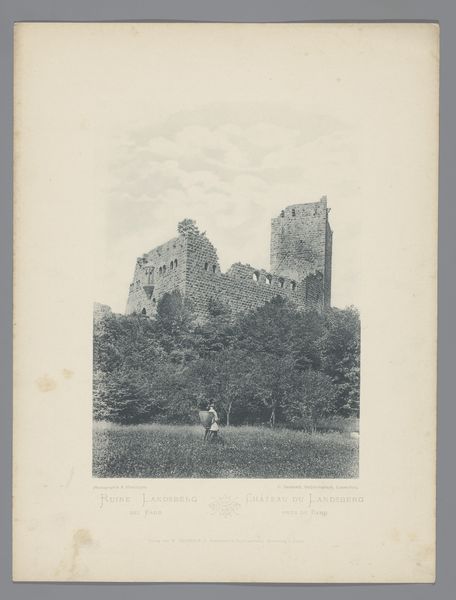 Charles Bernhoeft captured this image of the Haut-Koenigsbourg ruin near Orschwiller with photography. Bernhoeft's artistic practice coincided with a period of significant political and cultural shifts in Europe, particularly in the Alsace region where he worked. Bernhoeft's choice to photograph the Haut-Koenigsbourg ruin reflects a broader European fascination with medieval romanticism. This ruin, perched high on a hill, wasn't just a pile of stones; it was a symbol loaded with historical and cultural weight. We might consider how Bernhoeft's image invited viewers to contemplate the relationship between the past and the present. He positions the viewer at a distance from the ruin. This creates a sense of longing or melancholy for a bygone era. The image asks us to consider the layers of history embedded within the landscape itself. Bernhoeft captured a fleeting moment in time, but also hinted at the enduring power of history and memory.
