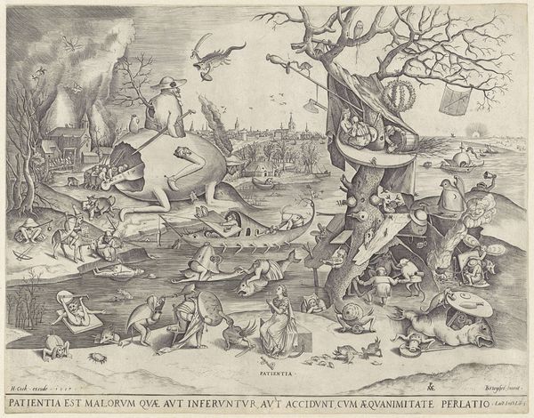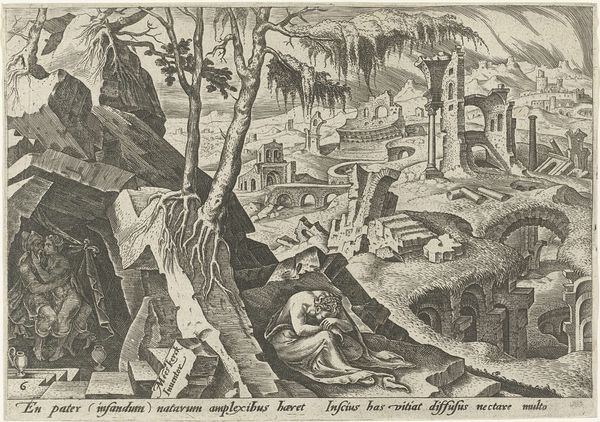 This print, "Hunting Leopards with Mirrors," was made by Jan Collaert the Younger, around the turn of the 17th century. It's an engraving, a process that demands careful labor, cutting lines into a metal plate. Ink is then pressed into these grooves, and the image transferred to paper. Collaert has meticulously captured a leopard hunt, where hunters use mirrors to lure the animals into traps. The crisp lines of the engraving highlight the textures of fur, rock, and foliage, showcasing the artist's skill and the capabilities of the medium. But the print’s precise lines also point to something beyond artistry. Consider the context: prints like these were luxury goods, often bound into books for wealthy patrons. The scene itself, a staged hunt, speaks to the status of both the hunters and the hunted. The labor-intensive process of engraving, multiplied across many impressions, was a business. By understanding the print's materiality and social context, we recognize it’s not just art, but a document of its time, reflecting the values and economics of early modern Europe.