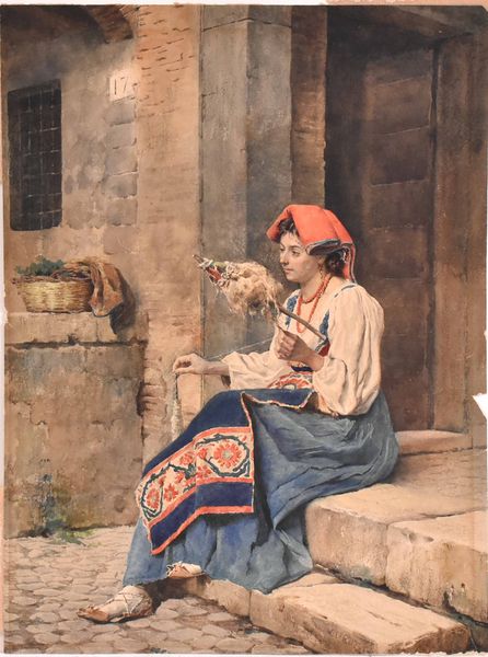 Joaquín Agrasot painted "Two Inhabitants of the Valencia Huerta (Drinking Wine)" in Spain, using oil on canvas, though the exact date is unknown. Agrasot was celebrated for his costumbrista scenes, capturing the everyday life and regional customs of Valencia. Here, we see two men, presumably from the agricultural region of Valencia, enjoying wine. Agrasot's work reflects the burgeoning regionalism of late 19th-century Spain, where artists celebrated local identities in the face of centralizing national forces. The meticulous rendering of the men’s traditional clothing speaks to the era's fascination with regional dress as a marker of cultural identity. The art institutions of the time encouraged such depictions, reinforcing a romanticized view of rural life. To fully appreciate Agrasot's place in the art world, we look to exhibition records and cultural archives. By situating the work historically, we can start to understand the dynamic interplay between art, identity, and the cultural institutions that shape them.
