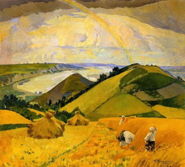 Jaroslav Keluc painted this landscape using oil on canvas. Keluc was born in the former Austro-Hungarian Empire in 1905, living through immense political change. His personal experiences of historical upheaval shaped his approach to painting, capturing the quiet beauty of the natural world as perhaps an escape from political and social unrest. The scene shows an idyllic countryside, the rolling hills and vibrant wildflowers creating a sense of peace and abundance. Yet, painted in the 20th century, we cannot separate this landscape from the violent century it was created in. This work evokes nostalgia, perhaps for a time before war, before borders were redrawn. It invites us to reflect on the relationship between the land and our identities, and how art can offer both solace and a critical lens through which we view our history.