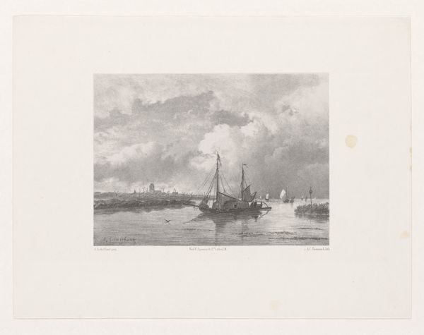 Editor: Here we have Henri Seghers's "Zeilschepen, een roeiboot en een stoomschip op een rivier," created sometime between 1880 and 1913, using pencil on paper as both drawing and print. I'm struck by the contrast of old and new with both sailboats and steamboats present, but I wonder what exactly makes it a 'print'? Curator: Notice the labor that goes into this piece. It's not just a quick sketch. Consider how a print allows for reproducibility, essentially democratizing the image. How does the implied industrial nature of printmaking contrast with the hand-drawn quality? Editor: That's an interesting tension – this combination of reproduction via printing with the handmade nature of the original drawing. So it's a mediation, rather than something purely mechanical? Curator: Precisely. And what does that mediation tell us about the changing landscape, both literally and culturally, during the industrial revolution? Here we have this depiction of the changing methods and production for travel along the river which had huge implications on culture. Look how detailed and deliberate his technique had to be! What aspects speak most to the viewer today? Editor: I think the overlapping images and attention to materials gives it such a special texture... but I appreciate the nuance and work of it after discussing the production as a material process. Curator: Exactly, we're reminded that even a seemingly simple image carries complex material and social histories within it. Editor: I'll certainly think differently now about the "labor" present in something so seemingly subtle.