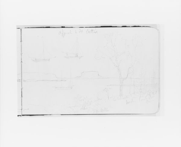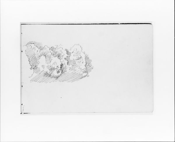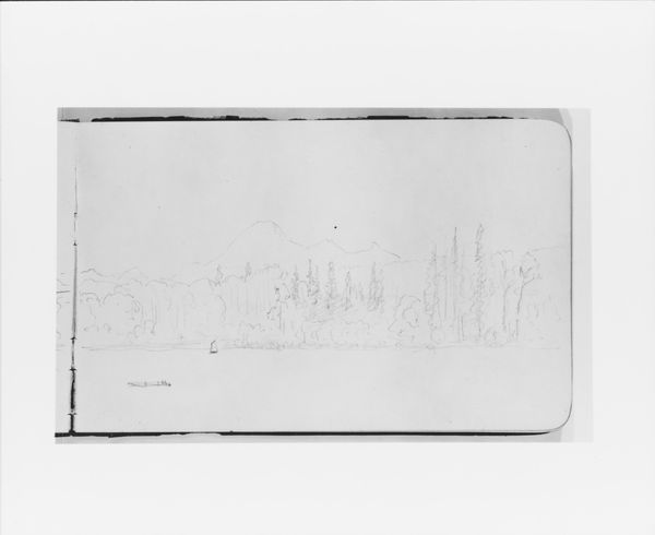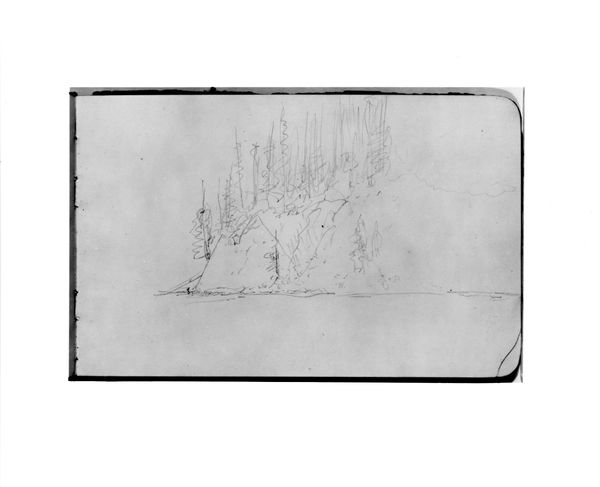 Editor: Here we have Albert Bierstadt's "Mountain Sketch" from 1890, a graphite drawing. It's fascinating how much atmosphere he creates with so few lines. What do you see in this piece? Curator: I see a romanticized vision of the American West, typical of the Hudson River School, but one that simultaneously conceals the complexities of westward expansion. This sketch, though seemingly innocent, participates in a broader narrative of dispossession and environmental exploitation. Editor: Dispossession? Could you elaborate? Curator: The 'untouched' landscapes that Bierstadt and his contemporaries painted were, of course, not empty. They were Indigenous homelands. By omitting any sign of native presence, these artists helped to promote the myth of a vacant wilderness, ready for white settlement and resource extraction. What effect does the starkness of the monochrome have on you? Editor: I guess I hadn’t considered the implications of what’s *not* shown. The lack of color maybe contributes to that idealized feeling— almost like a dream of the land, not the reality. Curator: Precisely. And this "dream" had very real consequences. Consider the socio-political context. These images bolstered Manifest Destiny, the belief that American settlers were destined to expand across the continent. Art became a tool in shaping public perception and justifying territorial expansion. It's crucial to view art through that critical lens. Editor: So it's about uncovering these hidden layers, understanding the art as part of a larger power structure? Curator: Absolutely. It is about dismantling the idea of art existing in a vacuum, instead connecting it to its role within political, economic, and social forces at play during its creation. What do you think knowing this helps us understand about this sketch and Bierstadt as an artist? Editor: It makes me question the whole idea of "pristine" wilderness. Thanks, that really changed my perspective. Curator: And, hopefully, it opens doors to continually question the power dynamics embedded within visual culture, even today.