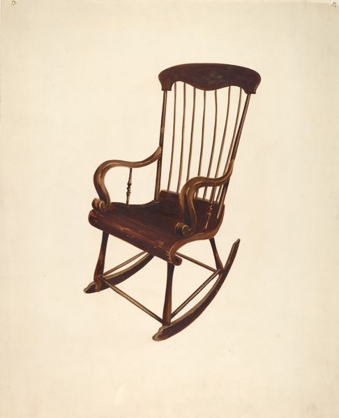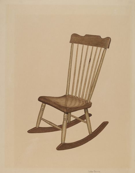 Editor: So, this is Leonard Battee’s “Chair,” from around 1937, made using drawing as a medium. The wood texture almost looks tangible! How can the materiality and craft of this work impact how we understand its meaning? Curator: Exactly! Instead of viewing it as a mere depiction, consider it as a record of labor, production, and consumption during the 1930s. We can consider where Battee found the materials to draw, and the value imbued on craftsmanship itself at a time of increasing industrial production. Do you think the style chosen impacted this, also? Editor: I think it's interesting he didn't attempt something abstract or modernist, given the date. But sticking with Realism allows him to make the wood and craftsmanship really stand out. The choice elevates it above just being something functional and perhaps calls the viewer to look closer at all the labour it embodies. Curator: Precisely. Also think about who this chair may have been for? The value a person put on having a comforting rocking chair in their home. Was it for work-weary individuals, or could this be viewed as a symbolic object representative of that era? Editor: I never would have considered this image through such a lens. Thinking of the materials and labor and the chair as a signifier is fascinating! I think my perspective on how the chair signifies work weary people really adds something new to my perspective of it. Curator: Indeed. Focusing on materials helps us understand artistic choices beyond aesthetics and connects them to social and economic contexts, as we examined. And your perspectives on labor further solidifies our combined understanding.