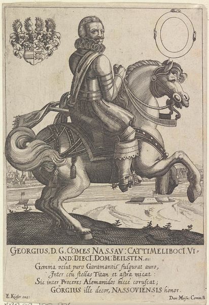 Curator: Abraham de Bruyn created this engraving titled "Caius Caesar Galigula, from 'Twelve Caesars on Horseback'" sometime between 1565 and 1587. It’s currently part of the collection at the Metropolitan Museum of Art. Editor: My immediate reaction is to the stark contrast. The crisp lines create a very powerful, almost austere image despite the flourish of the subject matter. It speaks volumes about the printmaking process. Curator: Absolutely, and the choice of representing Caligula—a figure historically marred by tyranny and excess—invites a fascinating intersectional reading. The engraving becomes not just a historical record, but also commentary on power, masculinity, and moral corruption. Editor: Exactly. Consider the labor involved in producing each print, and then think about the social hierarchy that positions the artisan as less valuable than the historical figure they represent. There's an inherent tension in the materiality itself. Curator: The image perpetuates a very specific classical aesthetic ideal, likely embraced at the courts of Europe, particularly focusing on an exaggerated masculinity of the elite in power. It reinforces the idea of the ruler as not only powerful but almost divinely appointed through that carefully constructed image. How complicit were the image-makers themselves? Editor: It forces us to look at the systems of labor and value operating at the time. The material value of the print versus the projected image of power held by the emperor highlights how the act of creation is fundamentally enmeshed within societal norms and political ideologies. I also can’t help but think about its influence across centuries—how this image, multiplied and distributed, contributes to the construction of "Caligula" as a type. Curator: And within that "type", there are specific codes around gender performance and political maneuvering that persist to this day, as we saw so dramatically played out, for instance, by the 45th President of the United States. Editor: Right. Ultimately, by considering its materials and production, and understanding the artist's place in the process, the image presents more complex reflections about political control, than might be originally visible on its surface. Curator: Precisely. This deeper understanding helps me as an activist not just appreciate this artwork as an object but examine my place within history, art, gender studies, race, and sociology. Editor: By foregrounding material concerns, this small print becomes an interesting focal point for broader economic and ideological conditions. It is more than just "an image of power" – it's an example of how power is actually built and circulated.