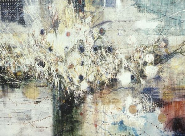 Curator: This is an untitled work by Norman Bluhm, created in 1960. It exemplifies Abstract Expressionism through the medium of oil paint. Editor: It feels chaotic, almost violent. A burst of energy captured, but I also find a weird sense of melancholy within it, like a storm receding. Curator: Bluhm's work often engaged with the socio-political climate of the time. Abstract Expressionism, in many ways, was a declaration of individual freedom against the backdrop of Cold War anxieties and McCarthyism. To understand it is to grapple with the narratives of identity in an age of conformity. Editor: I see echoes of past conflicts – not in any literal sense, of course, but in the primal clash of darkness and light. The heavy blues and blacks almost seem like bruised symbols of struggle and mourning. Curator: Absolutely. Considering Bluhm's biography, his experiences during the Second World War surely shaped his artistic perspective, becoming an indelible mark within his abstraction. We might view the impasto technique not just as a formal choice, but as an embodiment of psychological weight. Editor: The white almost fighting to emerge through all those darker shades is what gives the painting such strength. The white embodies hope but is still somehow overwhelmed. Curator: Right. It mirrors larger struggles within society at the time – attempts to break free, the resilience needed in the face of oppression, but the awareness that overcoming adversity is often a brutal act, leaving a trace of damage. Editor: Do you think there’s any link to religious symbolism, any idea that we are looking at divine force manifesting within these swathes of black, blue, and white? The marks feel biblical. Curator: Interesting. It could symbolize various forms of systemic oppression from his view, but also those moments where communities resisted through collective action, mutual aid. It depends on one's lived perspective in those times. Editor: Well, regardless, viewing the work has given me much to consider, as if the image remains long after one's encounter with the painting. Curator: Indeed. Bluhm encourages us to critically examine the historical, cultural, and personal threads intertwined within this singular act of painting.