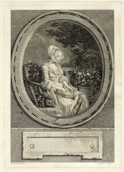 This print presents us with Marton, a young flower seller, rendered with ink on laid paper by Montbrian De Chateauvieux. The oval frame encloses not just a portrait, but a symbolic tableau. Marton carries a basket of roses, those age-old emblems of love and beauty, upon her head. These roses, symbols of Venus since antiquity, resurface endlessly, from Botticelli’s "Primavera" to countless vanitas paintings reminding us of beauty’s fleeting nature. Here, their abundance speaks of nature's bounty, yet the cherub nestled amongst them introduces a subtle melancholy—a memento mori reminding us that even the most beautiful things fade. The image works on a subconscious level. The viewer is reminded of the cycle of life, the ephemeral nature of beauty, and the constant presence of love and death intertwined. It is a symbol, a cultural echo, forever transformed yet eternally resonant.