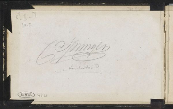 Curator: Looking at this “Schetsboek met 33 bladen” or sketchbook with 33 pages, dating roughly between 1884 and 1927 and attributed to Johan Antonie de Jonge, one immediately confronts its modest yet suggestive presence. Editor: It's so unassuming, almost like a forgotten diary. There’s a certain melancholy about it, the off-white of the paper whispers stories of fleeting thoughts and abandoned projects, you know? Curator: Indeed. This object offers insight into the creative process, it represents not only De Jonge's personal explorations but also the very materials and labor involved in art production. Editor: And what about that hand-lettered title, "Schetsboek?" It’s gorgeous! The calligraphy is so deliberate, and there’s that little windmill illustration. It suggests someone taking quiet pride in their craft. It also speaks of history, what kind of paper was being made back then? What was the ink made from? Curator: Precisely, it’s a mixed-media item and raises questions about value—how we classify drawings, collages, and the handwritten word as worthy objects within an artistic or historical narrative. It also begs examination of what constituted ‘art’ versus ‘craft’ during that time. Editor: I like imagining de Jonge carrying this around, maybe tucked in his pocket. Did he feel the same nervous energy about a blank page as I do? Or was he prolific, filling it up with a frenzy of ideas? The materiality feels so intimate. Curator: It humanizes the artist, shifting focus away from grand masterpieces and highlighting the everyday practice, the iterative and sometimes mundane processes that constitute creativity. Consumption and intention here must be questioned, for whom did De Jonge create these? Editor: Maybe just for himself. And now, decades later, we are poring over his private world. The intimacy is palpable, really gets you wondering what's inside! Curator: True, what it meant to him can now be studied, offering broader reflection on creative labor and the democratization of art. The notebook in its entirety acts as the art. Editor: A powerful reminder that every artist, no matter how unknown, contributes to this grand, ongoing conversation we call art history. It feels important somehow.
