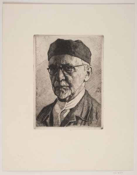 Curator: This is a woodcut portrait simply titled "Adolf von Menzel." It's a striking monochrome image of a man's head and shoulders. What do you make of it initially? Editor: It has a severe gravity. The stark black and white, the unflinching gaze…it projects an almost unforgiving intellectual intensity. He seems weary but determined. Curator: Exactly! It resonates, in some ways, with a cultural expectation of older, intellectual men— a patriarchal image we're almost conditioned to recognize. What happens, then, if we start digging at these power structures? Woodcut prints allowed art to be more easily circulated in society at large during the modern era and to shape social values and norms. Editor: I agree that these portrait prints provided and still provide valuable cultural insights! Tell me more about von Menzel and the moment of this woodcut’s creation. It’s clearly within the tradition of realism. Curator: Considering its public function in Germany, woodcuts such as these participated in the visual culture. The effect is less flattering and idealized and more concerned with representing him as a working intellectual within the 19th-century bourgeoisie. The effect is really powerful in solidifying class representation. Editor: He's got a palpable humanity that transcends social status, too. Look at the deep lines etched around his eyes; it conveys a lifetime of observation. And look closely at his spectacles. Curator: Yes, they speak volumes, don’t they? This man sees everything; or at least, thinks he does. It's a fascinating lens through which to consider portraiture as social commentary. Thank you for offering fresh perspectives, it encourages viewers to think critically. Editor: Thank you as well. Thinking about what images are out there shaping society makes understanding our visual reality ever-changing and vital!