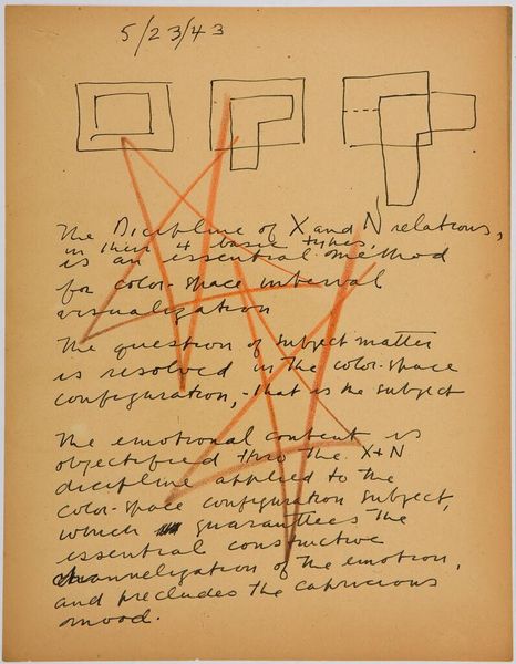 Editor: Here we have Kazimir Malevich’s “Cover materials of folder of the Congress Committees of Poor Peasants," from 1918. The geometric shapes and bold typography give it such a powerful, graphic feel. What's your take on this artwork? Curator: Well, the power of this piece really stems from its historical moment. This isn't just abstract art; it's a visual declaration of a new social order. How do you think Malevich uses geometric forms and typography to convey a specific message? Editor: I guess the shapes feel very modern and strong, and the typography… almost like propaganda? Curator: Precisely. Consider the Russian Revolution and the role of art as a tool for social change. Malevich, deeply embedded in this revolutionary fervor, sought to create a visual language for the proletariat. The red and black color palette, the stark geometry – these are all visual cues that align with the revolutionary spirit, right? Editor: Yes, now I see it! Like he's trying to create a whole new visual language for a new society. Curator: Exactly! And it's also important to understand the role of avant-garde movements like Constructivism. The focus was on dismantling traditional artistic values, embracing abstraction, and serving the needs of the revolution through accessible imagery. So, in a way, Malevich isn't just creating art; he is actively participating in the revolution. Editor: It makes so much more sense knowing the historical background. It is interesting how much the historical context changes the way one experiences the art. Thanks so much for your input. Curator: My pleasure! Remembering that art doesn't exist in a vacuum – that its meaning is always connected to broader social, political, and ideological currents – can unlock new depths within it.