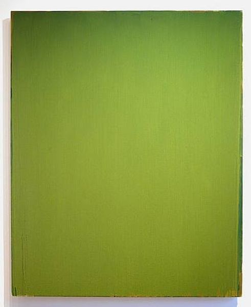 Gene Davis created *King Oliver* as one of his stripe paintings, which became his signature work. Here, thin vertical lines of muted green cascade across the canvas. What's fascinating about these stripes is that they are so decidedly un-gestural. There's no virtuoso brushwork here, no bravura moment of painterly expression. Instead, Davis seems more interested in the overall rhythm, the syncopation of color and line. The paint application is direct and even, minimizing any sense of depth. The evenness of the stripes reflects the culture of industrial production. Perhaps Davis was commenting on the repetitiveness of factory work, or how consumer objects are pumped out at scale? Or he could be pointing towards the underlying principles of musical composition. Ultimately, it’s the sheer accumulation of these individual marks that creates the artwork’s overall effect. By focusing on this quality of mass production, we can gain a greater appreciation for Davis's artistic vision.