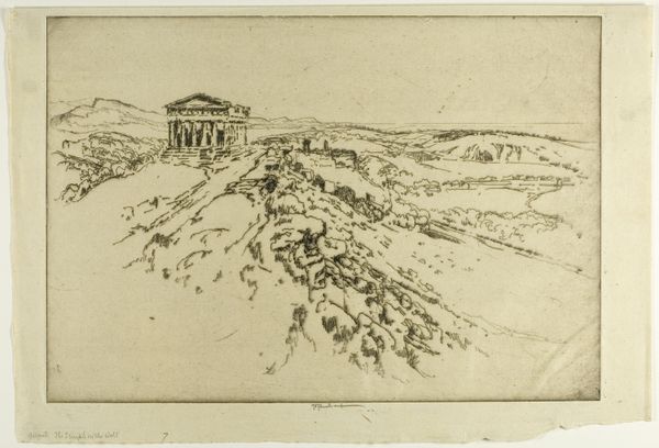 Editor: This is John Singer Sargent's "Sketch of the Acropolis," a pencil drawing. It feels so light and airy, almost like a memory. What do you see in this piece? Curator: Well, it whispers of travel, doesn't it? Sargent, ever the wanderer. For me, it’s about capturing the essence of a place, the feeling of standing there, bathed in that Grecian light, more than a literal depiction. It’s history, sketched in a hurry, a fleeting impression, like a song half-remembered. Editor: So it's less about accuracy and more about… emotion? Curator: Precisely! Think of it as Sargent’s visual diary entry. Not a photograph, but a feeling. A beautiful, historical echo. Editor: That makes me look at it in a new way. Thanks! Curator: My pleasure! It's about finding your own feeling in the sketch too.