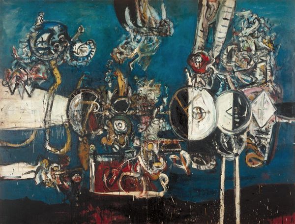 Editor: Here we have Dmytro Kavsan's "Still Life. Water" from 2009, executed in oil paint. There’s something so dreamlike about this composition, with its odd juxtaposition of classical still life elements and fantastical creatures. How do you interpret this work? Curator: Well, viewing it through a historical lens, this painting engages with several established genres but in a distinctly contemporary way. We see echoes of Dutch Golden Age still life paintings with their arrangements of objects, but those are placed within an uncanny tableau. The inclusion of fantastical elements like fairies and mermaids disrupts our sense of time and place, doesn't it? Consider how these motifs might reflect contemporary anxieties and fascinations with escapism in the face of global events, perhaps even commenting on ecological concerns given the focus on "water". What societal role might surrealist art serve? Editor: That’s a really interesting point about escapism. I hadn’t considered it as a reaction to specific events, but that makes sense given the dreamlike quality. I initially thought it was just decorative, but you’re making me think about its potential commentary. Curator: And that begs the question, to whom does the fantasy appeal and why? Perhaps those ethereal figures signal something about collective desires and societal structures. I am particularly interested in the political symbolism behind this piece: what power does water hold over human society, or how does it sustain society? What do you notice when you focus on one object or color within the image? Editor: Focusing on the figures around the vase…there’s this sense of fragility, of them being almost trapped in a luxurious, yet precarious situation. It highlights, for me, a need for more mindful stewardship. Curator: Exactly! Kavsan challenges viewers to re-evaluate their relationship with both the natural and the artificial world by re-interpreting conventional still-life tropes. It shows the important connection that history has to even modern artistic creations! Editor: I see the history of now too; I was stuck just appreciating the artistry itself. Thanks, I’ll certainly keep that perspective in mind going forward.