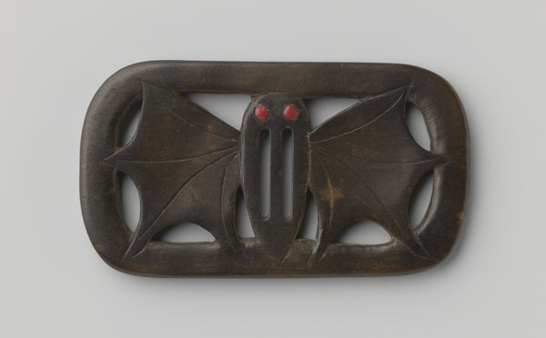 Editor: At the Metropolitan Museum of Art we have on display a 19th-century sword guard, or Tsuba, by Kanō Natsuo. Curator: The subdued metal palate gives off an aura of elegant solemnity, a fitting tribute to the warrior culture from which it came. Editor: These sword guards are crafted from metal using techniques like piercing and carving, forming decorative additions. Consider how armorers elevated what could have been purely functional objects to the level of complex art. Curator: I'm drawn to consider this object in the context of its user: the samurai. These weren't merely decorative, they were cultural signifiers indicating social standing, allegiances, and personal aesthetics, reflecting how they performed the ideals of the samurai class. Editor: Right, the metal of the guard connects to resources and craftsmanship. Labor informs these patterns. Take a close look, our artist played with scale using the surprisingly prominent figures of small ants that climb over the guard. Curator: Those small gold figures are a fascinating inclusion, almost acting as a memento mori for a class defined by violence. Tiny insects contrasted against the destructive power of a sword. Editor: Good point. How fascinating to consider that it also inverts the relationship of warrior and worker. The labor and the object of violence become inseparable and force us to recognize the social systems enmeshed within the craft. Curator: I appreciate how this work acts as a looking glass, helping us gaze not only at artistic technique and material, but reflecting also Japan's historical power structures through a lens of art history. Editor: Indeed. Examining the means of creation alongside the symbols represented makes for an especially nuanced understanding of both the artwork and its cultural milieu.