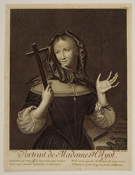 Curator: Luigi Sivalli's "Virgin Mary" presents a classic depiction, instantly recognizable for its serenity. Editor: The texture of the gown is striking. I'm curious about the printmaking process used to create such fine detail. Was it etching? Curator: Possibly. What's more compelling is examining this image within its religious and social context. Mary, the mother, perpetually interceding. Editor: And note the snake being crushed under her feet, the symbolism of the battle against evil. The choice of materials must have been crucial for conveying this message effectively. Curator: Absolutely. Considering the intended audience is vital. Who was meant to receive this image and what specific ideas about gender, power, and piety did it reinforce? Editor: Exactly, and how the printing and distribution processes factored into accessibility, making the artwork's message more pervasive. Curator: Thinking about the socio-historical and material conditions really does unlock new layers of understanding. Editor: Indeed, it’s a powerful reminder of the tangible and the theoretical, working in tandem.