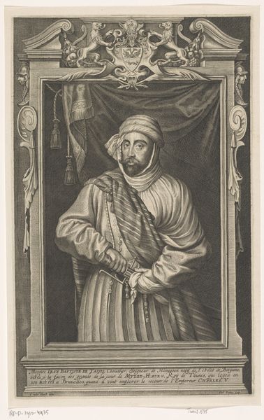 Editor: Here we have "Portret van Huldrych Zwingli," a print made between 1597 and 1599 by Robert Boissard, currently residing in the Rijksmuseum. It's rendered in a sort of old engraving style... the details are exquisite. I can’t help but notice the oval frame encircling the portrait, adorned with foliage. What do you make of this piece? Curator: Oh, this Zwingli fellow is quite the serious sort, isn't he? Though, let's be honest, most portraits from that era share a certain solemnity, don't you think? What grabs me here is that tension between the meticulous engraving, practically photographic in its detail, and the swirling Mannerist flourishes attempting to break free. Notice how Zwingli is literally framed by swirling botanicals... Are they celebratory or trapping? I wonder... what do *you* think those mean? Editor: I guess that depends on how one feels about Zwingli himself. Perhaps the artist felt similarly conflicted. I do like the way his firm jawline contrasts the flowy border. It’s sort of ironic, I think. Curator: Ah, good eye! And that’s exactly what keeps me circling back. There’s this push-and-pull – the reforming zealot versus the decorative flourishes. The book he clutches... symbol of knowledge or weaponized rhetoric? Food for thought, eh? It really forces you to reckon with the multi-layered ways an image like this could communicate. It’s far from simple hero worship, I suspect. Editor: I hadn’t thought about it like that! Seeing the border as commentary on his actions makes me look at it differently. Curator: Exactly! The image isn’t just *of* Zwingli; it’s *about* Zwingli and how he’s viewed, then and now, doesn't it? Editor: Thanks! I'll definitely remember to look beyond the subject matter in the future and consider the layers of potential meanings.