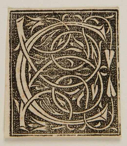 Curator: Here we have the letter C, a woodcut by an anonymous artist. It's quite striking, wouldn't you say? Editor: The tight composition is bold, like a dark garden pressing against its borders. I wonder about the cutting of the wood, how painstaking it must have been. Curator: It reminds me of illuminated manuscripts, each leaf and tendril whispering secrets. There's a sense of contained energy. Editor: Definitely. The contrast is stark. It highlights the labor involved in creating something reproducible. Was this mass-produced, or a singular piece? Curator: Sadly, the records are unclear. But its creation speaks to a broader world of craft. Editor: Yes, thinking about who made it, and how they saw their place in it all… it adds another layer to this little initial. Curator: Absolutely. A letter, yet also a world. Editor: A humble reminder of the beauty embedded in the basics of communication.