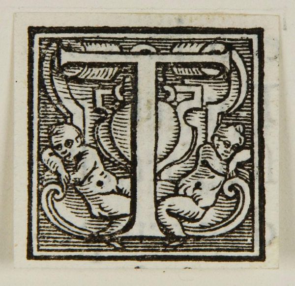 Curator: This captivating initial, "Letter S," comes to us from an anonymous hand. It’s part of the Harvard Art Museums collection. Editor: It feels almost mischievous, doesn’t it? Like a secret society’s emblem, all swirling lines and those...are those cherubs? Curator: Indeed. The image is rich with potential symbolism, touching on themes of infancy, the alphabet’s societal role, and the classical figures within a contemporary framework. Editor: The way the artist plays with light and shadow makes it feel both antique and strangely modern. I keep wanting to know the story behind those cherubs. Curator: Considering that we do not know the context, there is potential for interpretation through gender studies. In what way do the figures challenge gender norms? Editor: It is thought-provoking how such a simple letter, embellished, can raise so many questions. Curator: Precisely. This initial invites us to interrogate the narratives we attach to even the most mundane symbols.