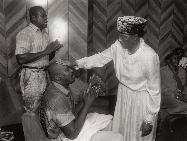 This photograph, made by Thomas Roma sometime in the past, invites a slow and careful viewing. The subdued monochrome palette and the way Roma captures these figures feels deeply reverent. The texture in the photograph is amazing. The play of light on the fabric of the women’s dresses creates subtle variations in tone that are quite beautiful. Notice how the folds and creases in the fabric become more pronounced in certain areas, adding depth and dimension to the image. The sleeping woman draped over the chairs has a hand resting on a book, and this small detail gives a clue about the solemnity of the ceremony taking place in the image. I think the way Roma has created such intimate and tender portraits of his subjects is compelling. The piece reminds me of the work of Roy DeCarava, particularly his ability to capture quiet, contemplative moments in everyday life. Art, you know, it's all just one big conversation.