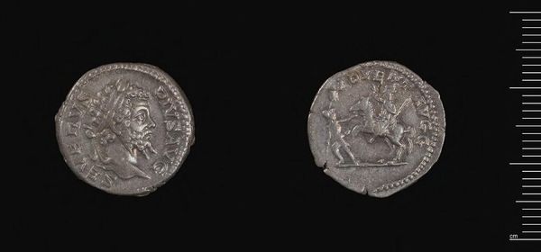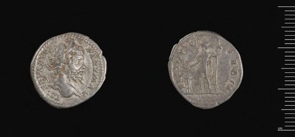 Editor: Here we have a silver coin of Septimius Severus. It's incredible to think that something so small could carry so much power and significance. What can you tell me about the role coins played in ancient Roman society? Curator: Coins such as this weren't just currency; they were powerful propaganda tools. How do you think the imagery on this coin, particularly the portrait of Septimius Severus, would have influenced public perception of the emperor? Editor: I suppose it created a sense of familiarity and legitimacy, like seeing his face every day reinforced his authority. What else would the average Roman citizen think when spending this coin? Curator: Precisely. Coins helped to disseminate imperial ideology and project an image of power and stability. They also functioned as historical records. What historical events or messages do you think this coin might have been intended to convey? Editor: Fascinating! It's like holding a little piece of carefully crafted political messaging in your hand. Curator: Exactly. And understanding that role is key to understanding Roman society.
