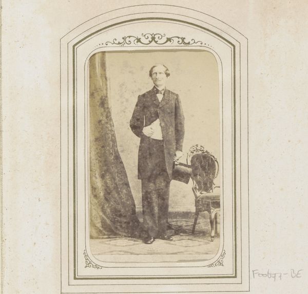 This small portrait of a standing man holding a hat and umbrella was made with photography, a relatively new medium at the time, by Charles Thomas Newcombe. Photographs like this one were often presented as documents of social standing. But we should also consider the materiality of the image itself. Photography had only been around for a few decades, and the techniques involved were complex, and often required toxic chemicals. The development of photography coincided with the rise of industrialization, and the medium itself can be seen as a product of capitalist society. The photograph's small size also speaks to its function as a portable keepsake, something that could be easily shared and displayed. This speaks to photography's ability to democratize portraiture, making it accessible to a wider range of people beyond the wealthy elite who could afford painted portraits. Recognizing photography's role in shaping social identities and power dynamics allows us to see the portrait as more than just a simple depiction of an individual, and to appreciate it as an object of cultural and historical significance.