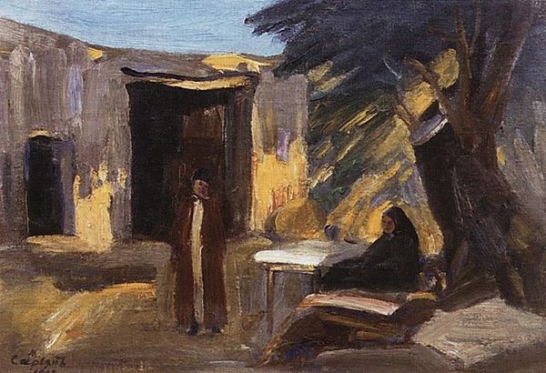 Eugène Delacroix made this watercolor painting, Moroccan Courtyard, after visiting Morocco in 1832. The image has significance as a historical and cultural record. Delacroix, a leading French Romantic painter, ventured to North Africa during a time of burgeoning European interest in the "Orient." The courtyard scene isn't merely a depiction of architecture; it offers glimpses into the domestic sphere of Moroccan life, a world largely hidden from European eyes. Delacroix's Orientalist paintings have been the subject of much art historical debate. Scholars have examined the degree to which such works reflect genuine cultural exchange or perpetuate colonial power dynamics. By studying Delacroix's sketches, travel journals, and the broader context of French colonial ambitions in North Africa, we can understand the painting as a complex product of its time. It invites us to consider the ethics of representation and the role of art in shaping cultural perceptions.