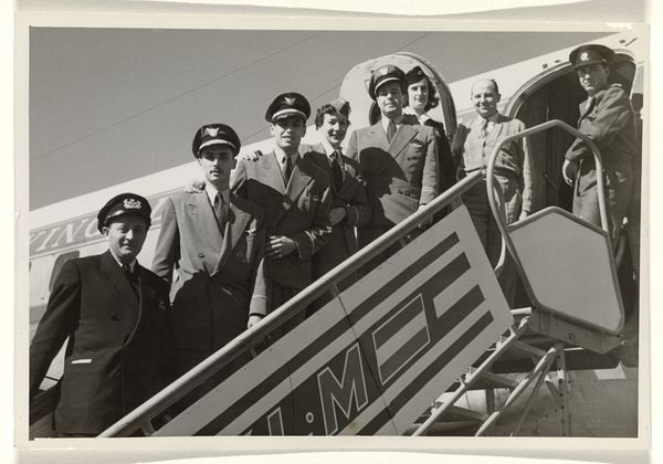 Curator: This gelatin-silver print, titled "Castilian Loyalists, Spanish Civil War," was captured by David Seymour in 1936. What strikes you immediately about this image? Editor: The huddled posture of the men, intensely focused on a shared map, creates an atmosphere thick with anxiety and resolve. The tangible nature of the cigarette, the wool clothing - there's a grounded sense of physical reality juxtaposed with the abstract realm of war strategy. Curator: Precisely. Seymour's lens often sought out those stark contrasts. Notice how the map functions almost as a sacred object, a shared text guiding their actions, but also a symbol of immense, life-altering decisions. This war has to be fought, negotiated, piece by piece on maps just like that one. Editor: I'm curious about the map itself. Its materiality interests me; how it was produced, who created it, and the access to information it provided to these men. It's not just a representation of territory, but also an artifact of power and a tool of labor in a time of war. This specific artifact shows how material objects could embody such power. Curator: I see your point. Its presence as a constructed tool informs their agency and ability to orient themselves through space and time. Moreover, notice their hats – such humble articles of clothing, signaling both uniformity and individual identity against a background of collective purpose. How do everyday materials get transformed into political symbols during times of crisis? Editor: Indeed. And how did Seymour position himself within that political landscape as the image's maker and purveyor? What role did the production and dissemination of this photograph play in influencing perceptions of the Spanish Civil War both at home and abroad? Who saw the print? How was it circulated? It begs us to ask: who consumes the raw labor and pain in times of crisis, from a position of safety? Curator: A very necessary interrogation. It moves beyond mere historical documentation, pressing us to grapple with ethical considerations of spectatorship. To carry away what those people at that moment could not; a vision that survives the battlefields of their time. Editor: Precisely. That materiality transforms, doesn't it? Thank you for this walk, it got my cogs going. Curator: Mine too, many thanks!
