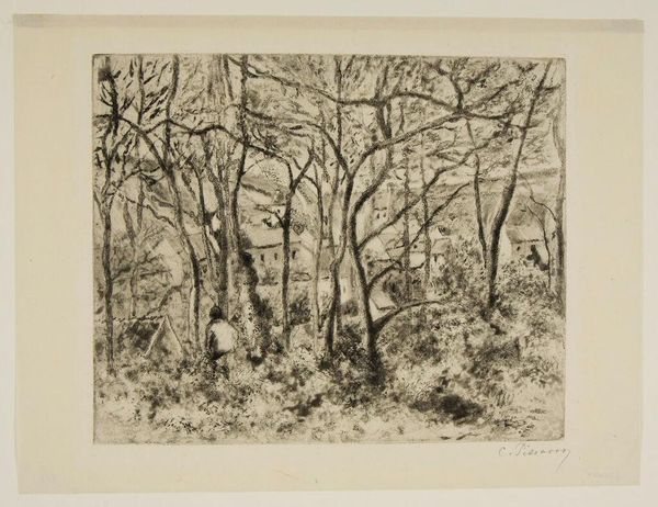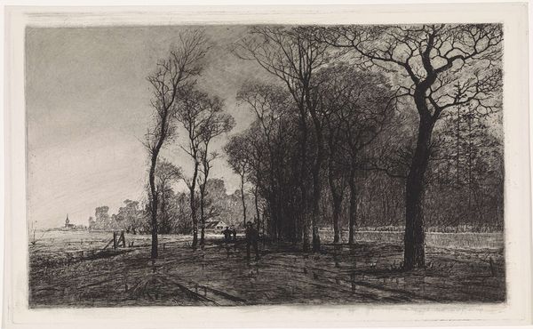 Editor: This is Hans Meid's "Zoological Gardens", an undated print in the Harvard Art Museums. It feels like a glimpse into another world, a serene escape. What do you see in this piece? Curator: I see a reflection of class and leisure. The figures – some strolling, others on horseback – suggest a social hierarchy enjoying a shared space. How might this imagery reinforce or challenge notions of public space and access during Meid's time? Editor: That's interesting, I hadn't thought about it that way. Curator: Consider the historical context. Zoological gardens were often sites of both entertainment and scientific study, but also spaces where social norms were performed and reinforced. The artist's choice to depict this scene invites us to consider the politics embedded within seemingly innocent leisure activities. Editor: That makes me consider what is missing, too. Curator: Exactly! The image isn't simply a representation of a park, but a cultural document ripe for critical analysis.