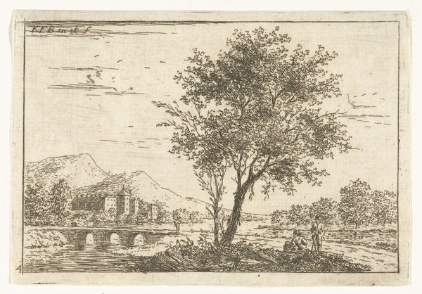 Editor: This etching from 1614, “Skaters and Kolf Players near Farmhouses,” depicts a busy winter scene, filled with figures skating and playing kolf, a type of golf. The detail is amazing for such a small print! What stands out to you when you look at this, in terms of its cultural context? Curator: It's a fantastic slice of life from the Dutch Golden Age, isn’t it? Look at how the print normalizes leisure alongside labor, as evidenced by that figure pushing a wheelbarrow across the ice. Think about how burgeoning mercantile culture made such leisure increasingly accessible and how artists responded. This seemingly simple scene subtly reflects evolving social hierarchies. Editor: That's interesting, I hadn't considered that. It just seemed like a fun snapshot. But were these kinds of scenes really accessible to everyone in Dutch society at the time, or just the wealthier classes? Curator: That's a crucial question to ask! Prints like these played a role in constructing a certain idea of Dutch life. The reality was more stratified, of course, but by circulating these images, artists contributed to a sense of shared cultural identity. How do you think the accessibility of printmaking as a medium plays into its public role at that time? Editor: So the relative affordability of a print allowed this vision of Dutch life to circulate widely and thus inform public opinion. The medium becomes part of the message! I guess I never considered how much social commentary could be packed into such a seemingly innocuous scene. Thanks! Curator: Precisely! And by thinking about those connections, we get a much richer understanding not only of the artwork, but the society that produced it. A print like this speaks volumes about the social values that people were encouraged to hold. Editor: I'll definitely look at genre scenes differently now!