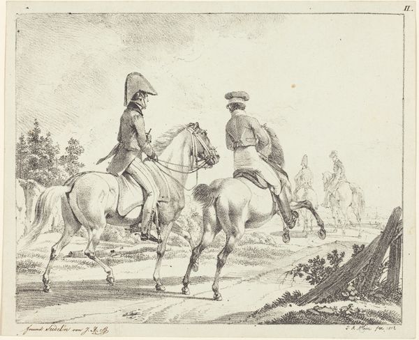 This etching, “Riding School and Horses,” by Johann Adolph Darnstedt, depicts a man on horseback, his mount rearing up, observed by other riders. The horse, a symbol of power and vitality, has been laden with meaning for millennia. Here, the rearing horse evokes images of equestrian statues of emperors and kings, from Marcus Aurelius in Rome to countless Renaissance rulers. In each instance, the horse transcends mere transport, becoming a symbol of dominance. The act of rearing can be traced back to classical antiquity, where it symbolized triumph and the sublime assertion of the will. Consider Leonardo's unfinished "Adoration of the Magi," where horses surge in a chaotic mass, embodying the very power and turmoil of the era. The horse is a potent emotional symbol, engaging us on a deep, subconscious level with its primal energy. Notice how Darnstedt's horse, although rendered in a controlled, almost academic manner, still vibrates with that age-old tension between instinct and control. It demonstrates how symbols continually resurface, evolve, and take on new meanings across historical contexts.