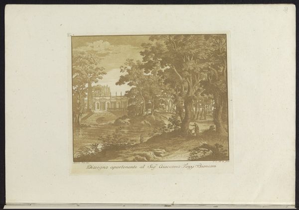Editor: Here we have "Het Huys te Westerbeeck," an etching with watercolor by Carel Allard, created sometime between 1660 and 1693. It’s so quaint, almost like a scene from a storybook. I'm drawn to the colors. What jumps out at you? Curator: The quiet confidence of the Dutch Golden Age. Allard’s estate portrait isn’t just a depiction, it’s a carefully constructed piece of propaganda. The calm is deceptive; it shouts wealth, stability. Note how the house isn't framed, how the approach is public and theatrical. Editor: Propaganda? I just saw it as a pretty landscape! Curator: Ah, but that’s the trick! This "pretty landscape" is meticulously designed. Allard is not painting a wilderness; it's manicured nature. Even the figures seem posed. How do they strike you? Are they relaxed? Or performative? Editor: Now that you mention it, they do seem a little stiff. More like actors on a stage. Curator: Precisely. And that little bridge? Linking the viewer to the opulence beyond. Every detail tells a story, a story of Dutch prosperity. Editor: Wow, I completely missed all of that! I’ll never look at a landscape the same way again. Curator: That's the beauty of art, isn't it? Always more to uncover, more stories whispering beneath the surface.