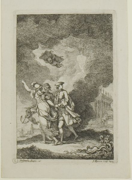 Simon Fokke’s etching presents an allegory of steadfastness with figures pulling at a central cross. The cross, of course, speaks to Christian faith, and the cherubs above bearing a wreath suggest divine approval and reward for unwavering devotion. Yet, let us not confine ourselves to a singular interpretation. The act of being pulled in different directions evokes the classical image of Hercules at the crossroads, torn between virtue and vice. The cross, here, becomes a symbol of moral choice, a fulcrum upon which the soul’s fate is balanced. Consider, too, the figure of Death pulling one of the ropes: a chilling reminder of mortality's constant presence. The image resonates with a deep-seated human fear and an eternal struggle between earthly desires and spiritual resolve. The composition engages viewers on a subconscious level, evoking intense emotional states as we contemplate our own paths. The figures pulling the ropes remind us how the human psyche is constantly subject to external influences. This is not a linear progression, but a cyclical return to fundamental choices, recast in the visual language of each new age.