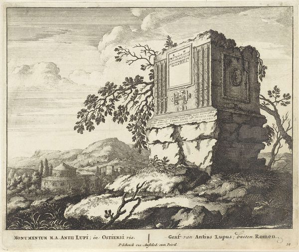 Curator: Domenico Cunego’s etching, "Amphitheater of Capua," presents this ancient Roman structure in ruins, softened by time and nature. What's your first impression? Editor: It feels melancholic, a poignant reminder of faded glory. The crumbling stone, the sparse figures… it's all very wistful. Curator: The figures offer a contemporary context, integrating the amphitheater into the daily life of 18th-century Italy. Note the sheep, the people relaxing. Editor: Right, it's like the ruins have become a pastoral backdrop. But the amphitheater still carries a silent weight, don’t you think? A vestige of a powerful empire. Curator: Absolutely. Cunego captures that tension beautifully: the present superimposed on the past, both informing each other. Editor: Yes, a silent stage. We are left to ponder on the spectacle that was and what remains.