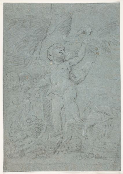 Agostino Carracci made this drawing, "Fanger bringes frem for en feltherre," using brown wash and red chalk on paper. The rapid, fluid strokes of the chalk and wash suggest a mind working quickly. Rather than aiming for a finished, polished look, Carracci seems more interested in capturing a fleeting idea. The layering of the wash creates depth and volume, while the red chalk adds warmth and highlights to the figures, giving them a sense of life. Drawings like this were vital for artists to hone their skills and explore ideas before committing them to larger, more permanent works. They allowed for experimentation and improvisation, capturing the artist's thought process in real-time. In this case, the study may have been done in preparation for a painting or print. Looking closely at the materials and the way they've been handled, we can gain a better understanding of the artist's intentions and the value placed on skilled handwork.
