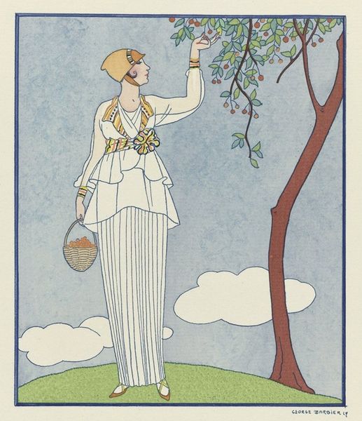 Louis Rhead created this advertising poster for ‘The Sun’ newspaper. The artwork immediately draws you into a stylized world where the colours are richly saturated and the lines are deliberately bold and curving, evoking the aesthetics of Art Nouveau. Notice how Rhead uses the formal elements to construct a scene that borders on the allegorical. A figure, draped in a rust-colored robe, stands as if contemplating the landscape before her. Her robe is adorned with sun-like motifs, suggesting a symbolic connection to the newspaper being advertised. A winding blue river cuts through the composition, leading the eye towards a stylized sunset, framed by the geometric forms of trees. The composition uses flattened space and decorative patterns which challenges traditional depth. The careful arrangement of these elements creates a visual language that moves beyond simple representation, to a deeper conceptual play, characteristic of the period's exploration into the symbolic and the subjective. Art does not have a singular meaning, but is always open to ongoing interpretation.