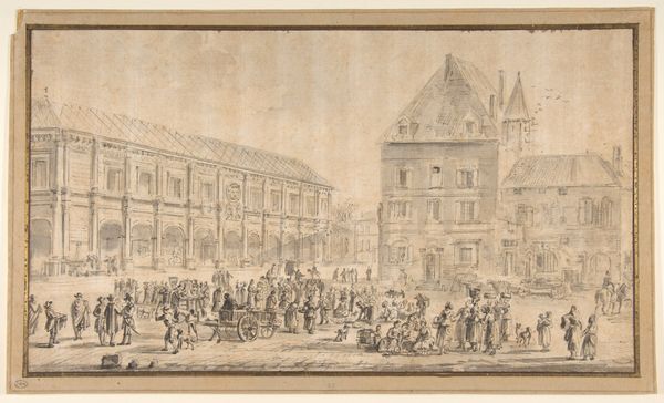 Editor: Here we have Jacques Rigaud's "Reception of the Knights of the Order of the Holy Spirit in the Chapel of Versailles during the Great Promotion of June 3, 1724," created sometime between 1724 and 1754 using ink on paper. It's incredibly detailed. I’m struck by how the artist captures such a grand, theatrical space. What symbolic meaning might you find embedded within it? Curator: It's the staging of power, isn't it? Consider how the architectural setting—the chapel itself—becomes a vessel, laden with the symbolic weight of the French monarchy and divine right. And above, that almost overwhelming presence of the divine, bearing down, almost legitimizing earthly power through heavenly decree. Editor: So, the symbols within reinforce the authority of the monarchy? Curator: Precisely. Think about the Order of the Holy Spirit itself. Its knights, participating in this ritual, become physical manifestations of power, linked to a spiritual lineage. Notice how Rigaud painstakingly renders their garments, each detail echoing inherited privilege and sacred mandate. The scene serves not only as a historical record but also as a powerful statement about societal order. Editor: And that very deliberate perspective? It guides our eyes right to the most important figures. Curator: Indeed, perspective becomes a tool, structuring how we, the viewers, are meant to perceive this power dynamic. Ask yourself: Who benefits from this visual organization, and whose story is being told—or, perhaps, omitted? Editor: I hadn't considered the perspective in that way. It really brings home the idea of constructed narratives. Curator: Exactly. These aren't just scenes, they're carefully constructed arguments, using imagery to shape belief and reinforce social hierarchies. Recognizing those embedded visual cues is key. Editor: I'll definitely look at art with a more critical eye now. Thanks!