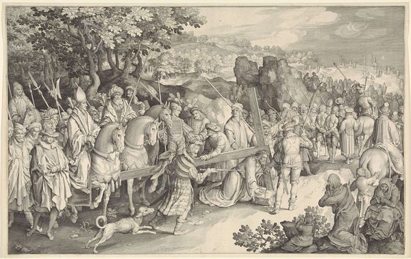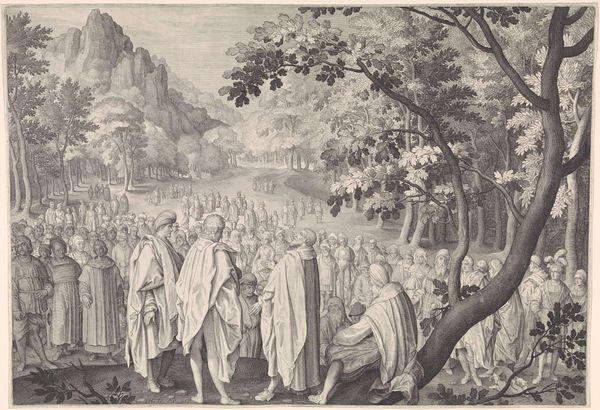 Nicolaes de Bruyn etched this rendering of the Sermon on the Mount, a pivotal scene from the Gospel of Matthew. Here, the radiant figure of Christ is shown delivering his teachings on a verdant hillside to a diverse crowd of listeners. The motif of the mountain is particularly potent. Mountains have long symbolized divine encounters. Think of Mount Sinai, where Moses received the Ten Commandments. In classical antiquity, high places were associated with the gods. This visual echoes through time. In earlier works the motif of the mountain was used to suggest the site of pagan temples. The artist has skillfully transposed this onto the biblical narrative. The crowd's varied reactions capture a range of human emotions—from reverence to contemplation. This speaks to the power of the image to tap into our collective memory, engaging viewers on a subconscious level. The symbolism of the mountain as a sacred space remains. It transcends cultural boundaries and evolves with new meanings. It serves as a testament to its enduring emotional and psychological resonance.
